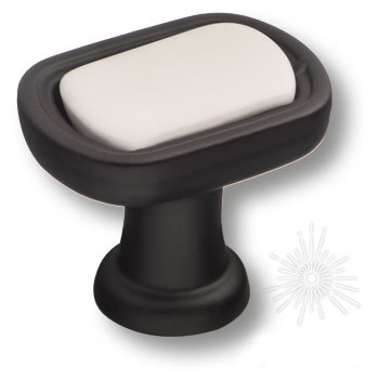 Ручка кнопка 6025-85-000, материал Замак Керамика, цвет Черный Белый, отделка Керамика Черный